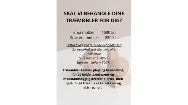 Gælder kun møbler i massivt egetræ og bøg - sæbe/oliebehandlet.